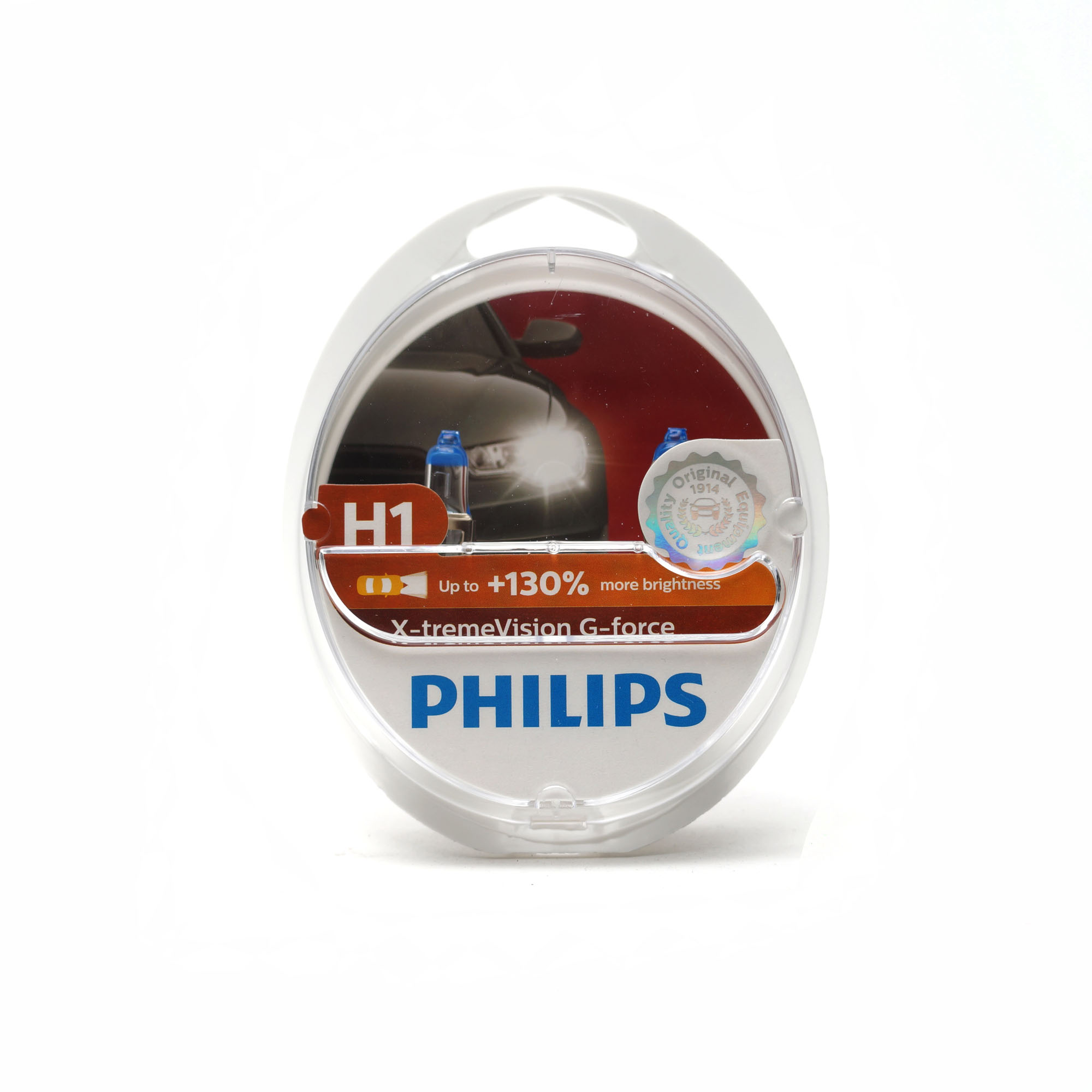 Лампа Philips упакована в блистер. В комплекте: Лампа H1 12V 55W P14.5s X-treme Vision G-force +130%: 2 шт -