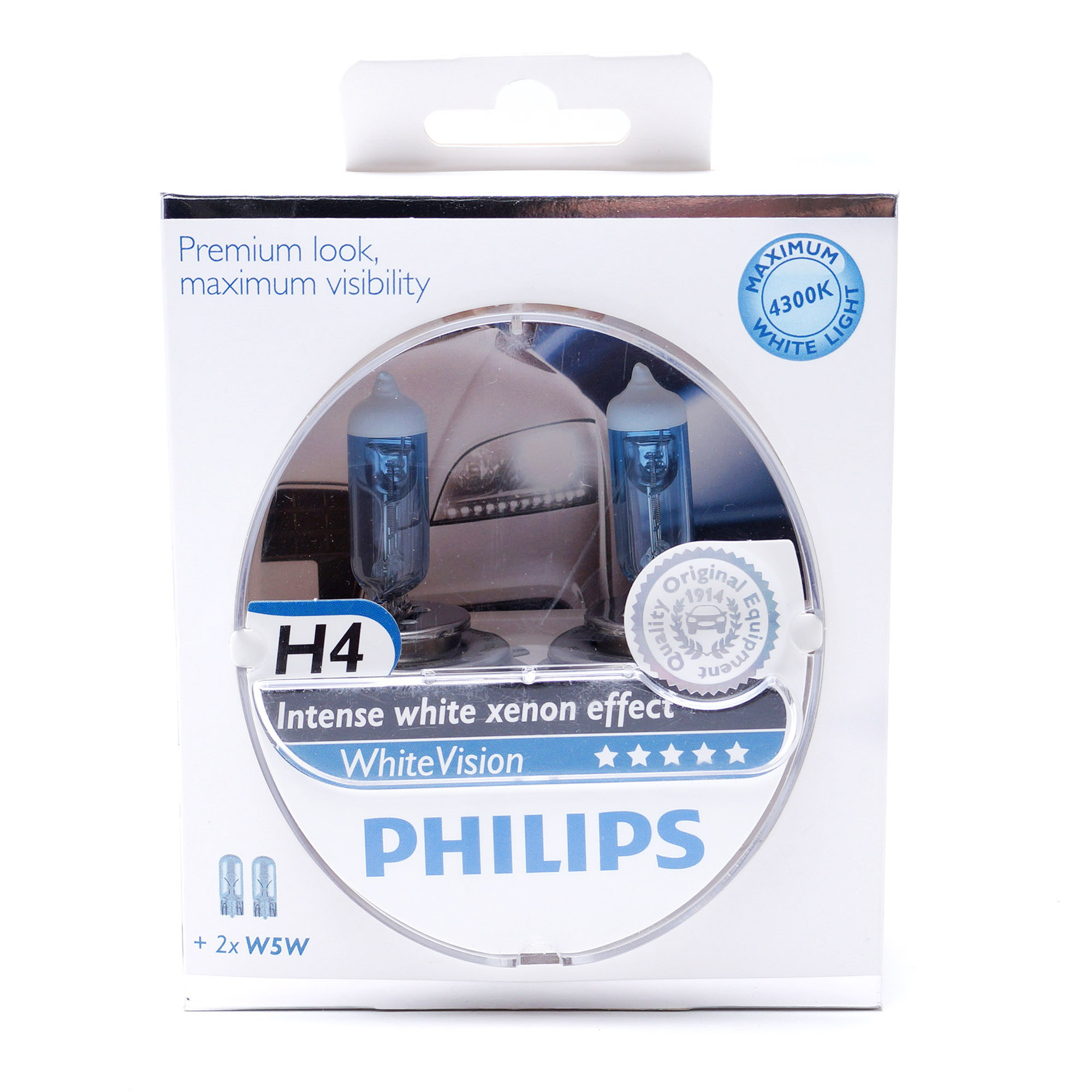 Лампы головного освещения Philips WhiteVision превосходят по характеристикам любые автомобильные лампы с синим светом. Это лучший выбор для водителей, которым не нужен компромисс между стилем и безопасностью. Обладая цветовой температурой ксеноновых ламп и стильным белым цоколем, лампы WhiteVision идеально подходят для головного освещения. Запатентованная технология покрытия Philips 3-го поколения впервые обеспечивает по-настоящему белый свет ламп WhiteVision и является шедевром эволюции.